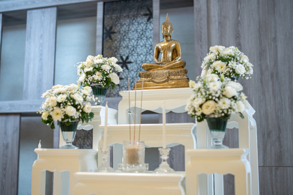 - น้ำมนต์หรือแจกันดอกไม้สด เพื่อเพิ่มความสดชื่นและพลังชีวิต